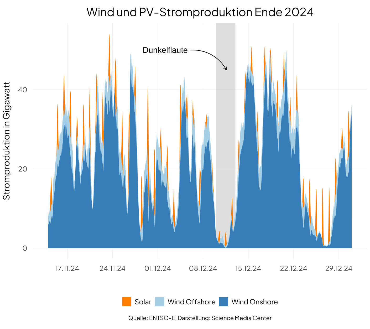 Windräder und Solaranlagen liefern inzwischen knapp die Hälfte der jährlichen Nettostromerzeugung in Deutschland und prägen durch ihre wetterbedingte Produktion das Stromsystem [1]. Bestehende Kohle-, Gas- und Pumpspeicherkraftwerke können die Schwankungen in gewissem Maß ausgleichen und auch in windstillen und dunklen Zeiten ausreichend Strom liefern. Mit dem geplanten Ausbau der erneuerbaren Energien und dem beschlossenen Kohleausstieg verändern sich aber die Voraussetzungen [2].