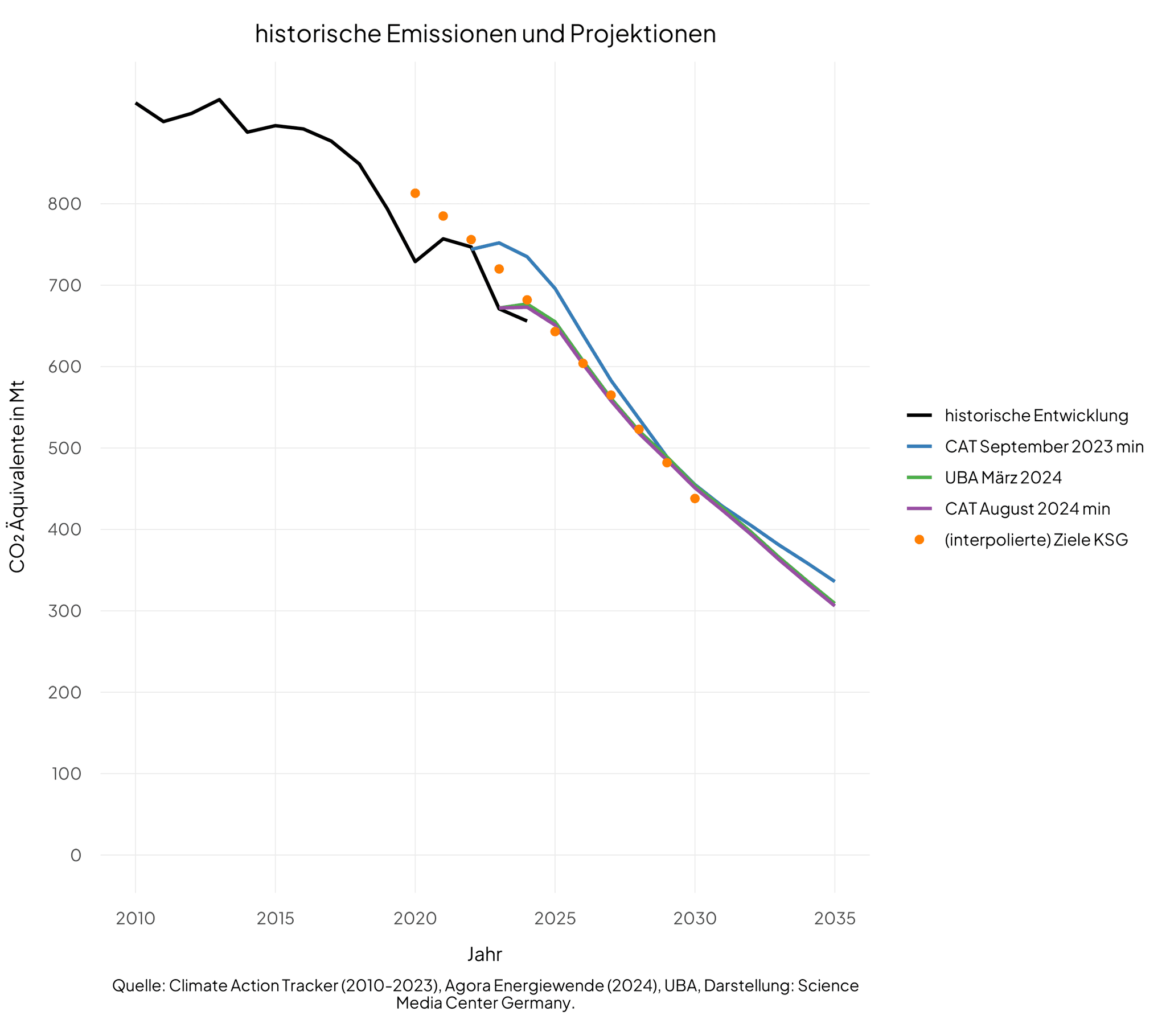 Treibhausgasemissionen sanken 2024 um 18 Millionen Tonnen auf 656 Millionen Tonnen CO₂-Äquivalente im Vergleich zum Vorjahr