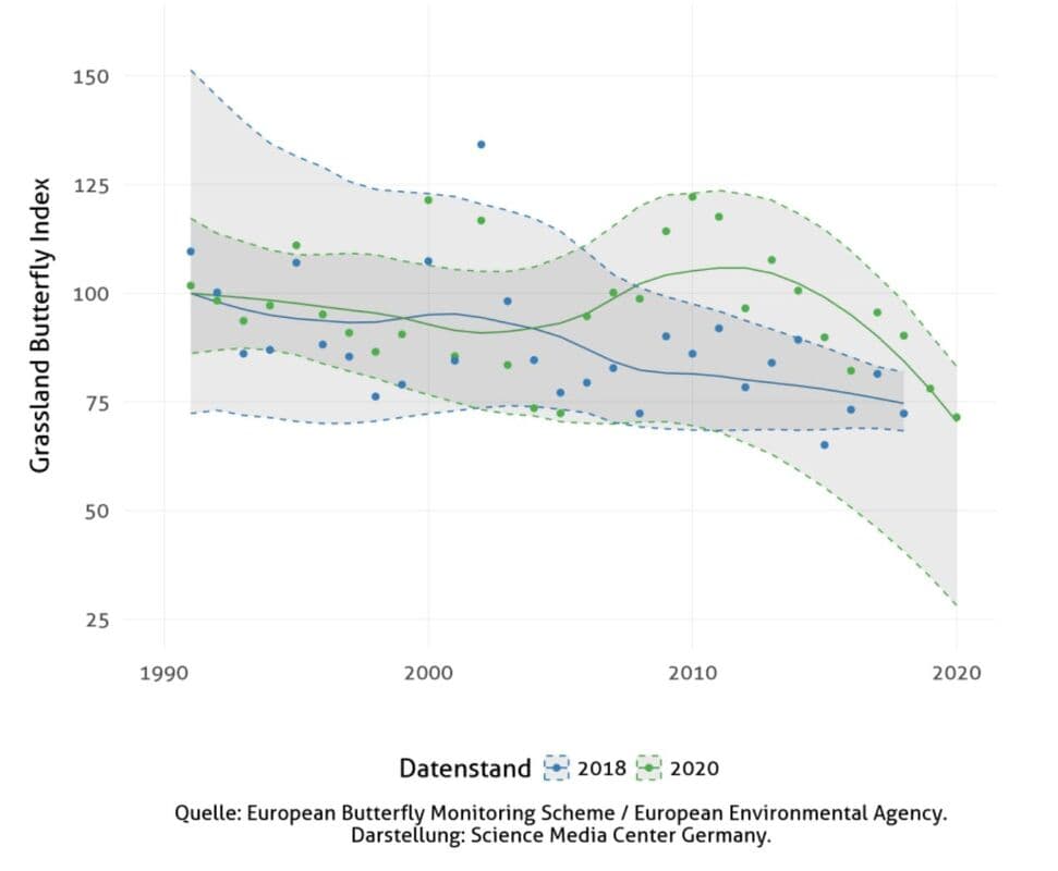 [8] Van Swaay CAM et al. (2020): European Grassland Butterfly Indicator 1990-2020 Technical report. Butterfly Conservation Europe & SPRING/eBMS & Vlinderstichting.