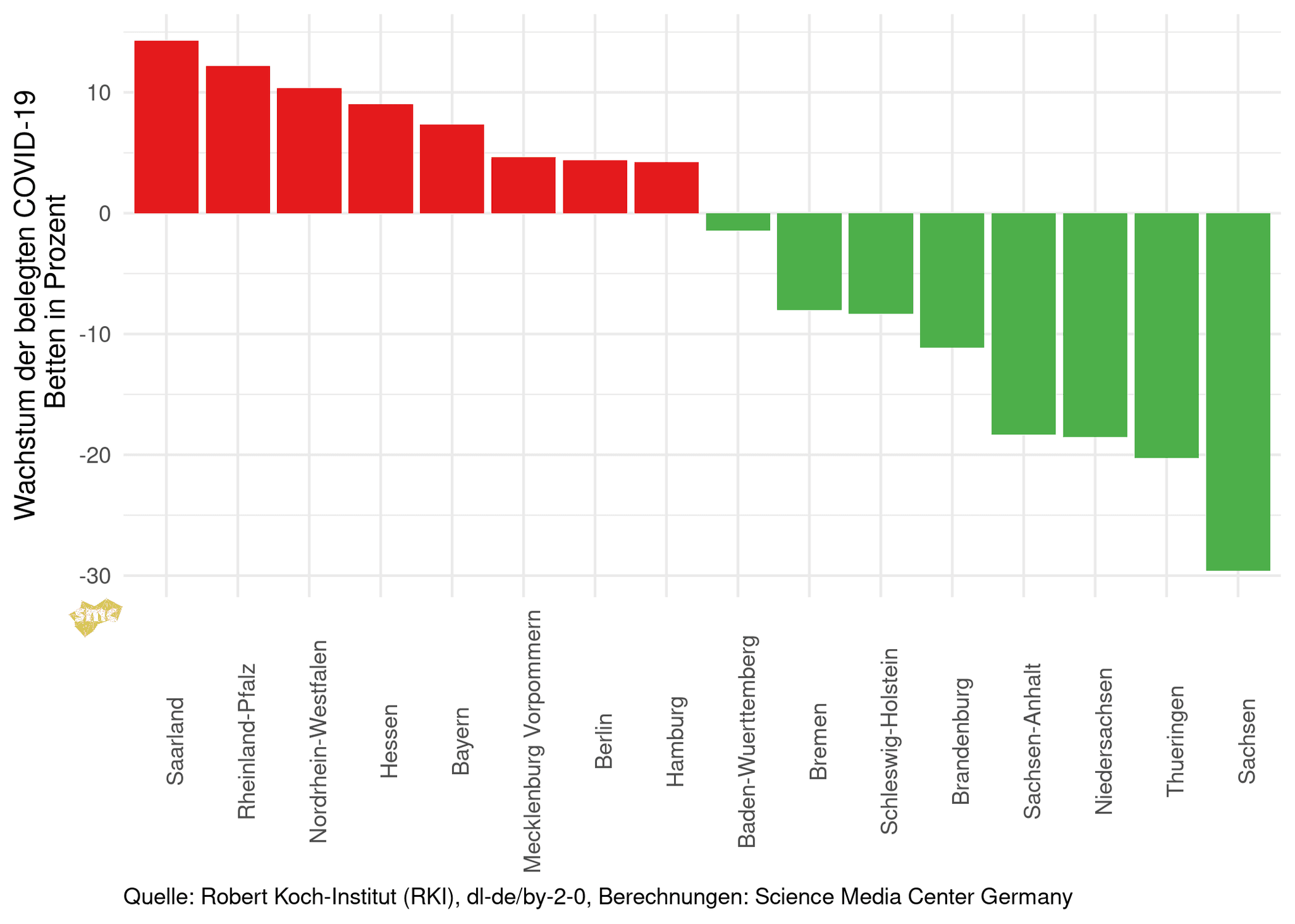 In einigen Bundesländern gibt es im Vergleich zur Vorwoche steigende Zahlen der COVID-19-Fälle auf den Intensivstationen. Der Trend ist aber in keinem Bundesland besonders stark.