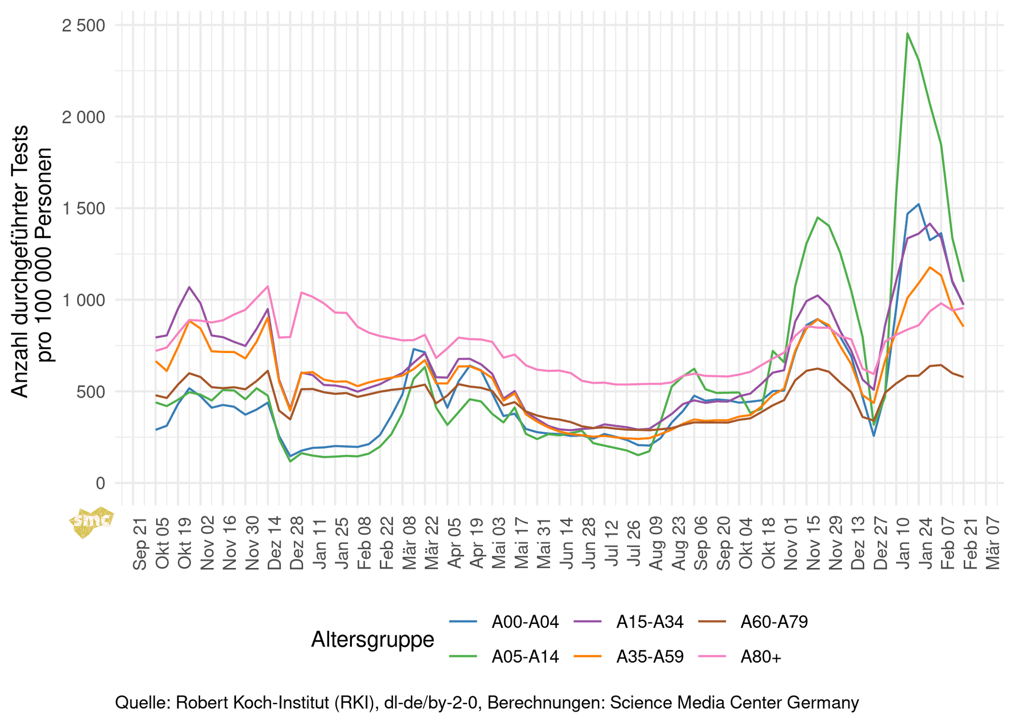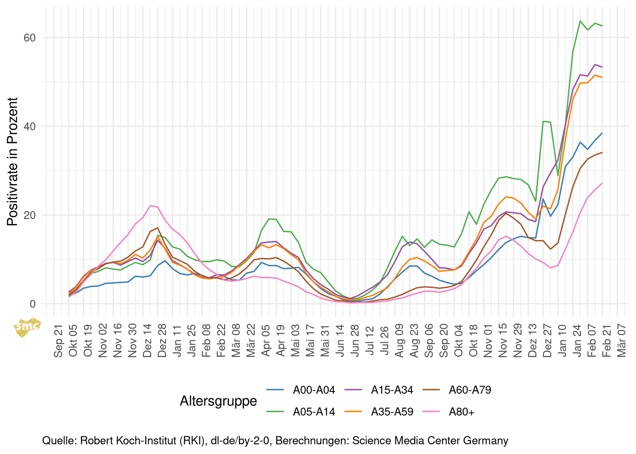 Aktuell steigt die Testpositivrate in den Altersgruppen ab 60 Jahren, was auch hier eine wachsende Untererfassung vermuten lässt.