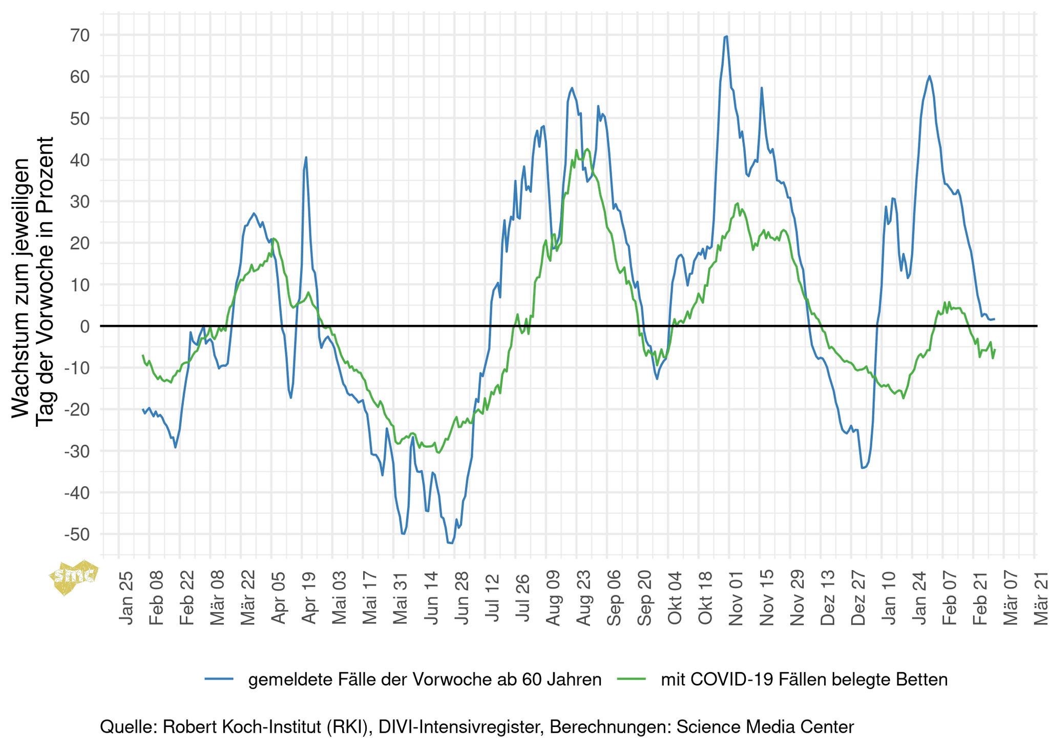 Dieser wöchentliche Report des Science Media Center Germany (SMC) fasst das aktuelle Corona-Geschehen anhand relevanter Kennzahlen zusammen und bietet neue Blickwinkel auf die verfügbaren Daten.