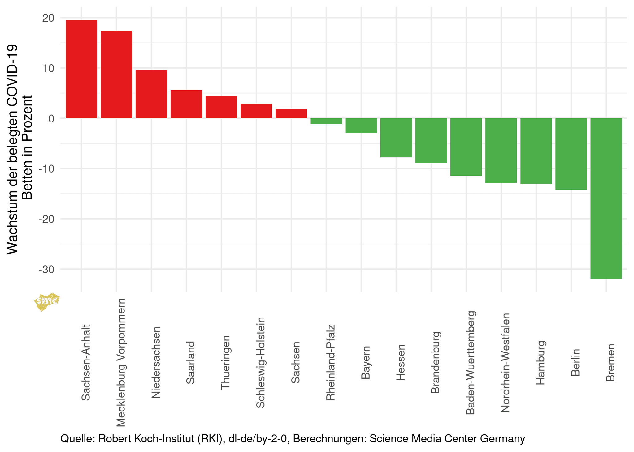 Der Trend der Intensivstationen ist für die Bundesländer weiterhin uneinheitlich.