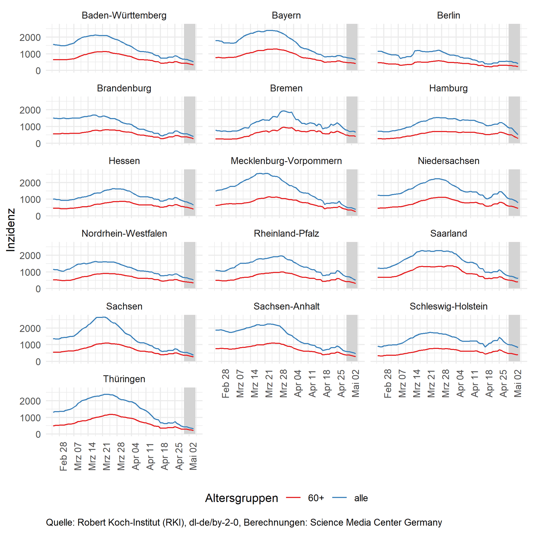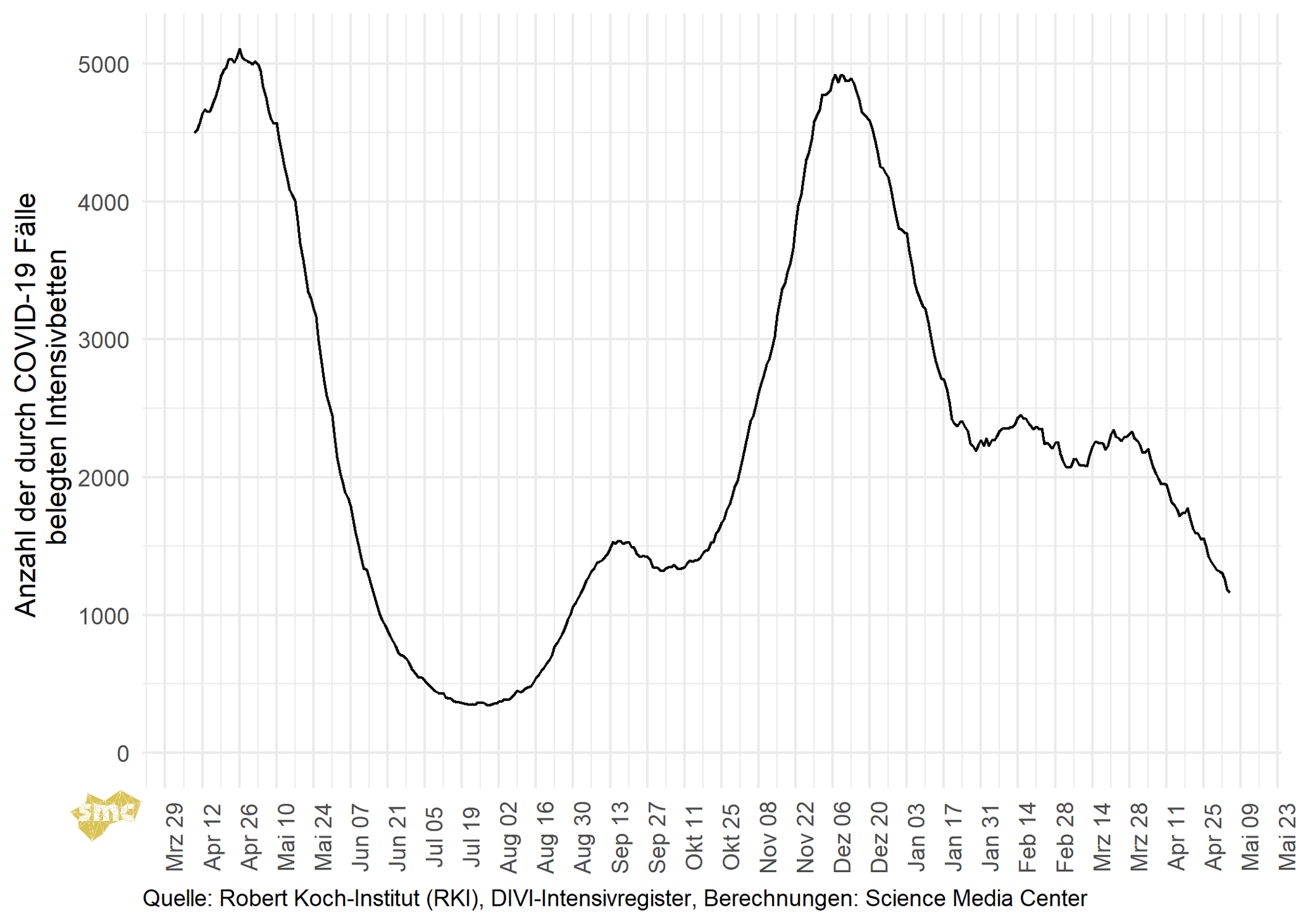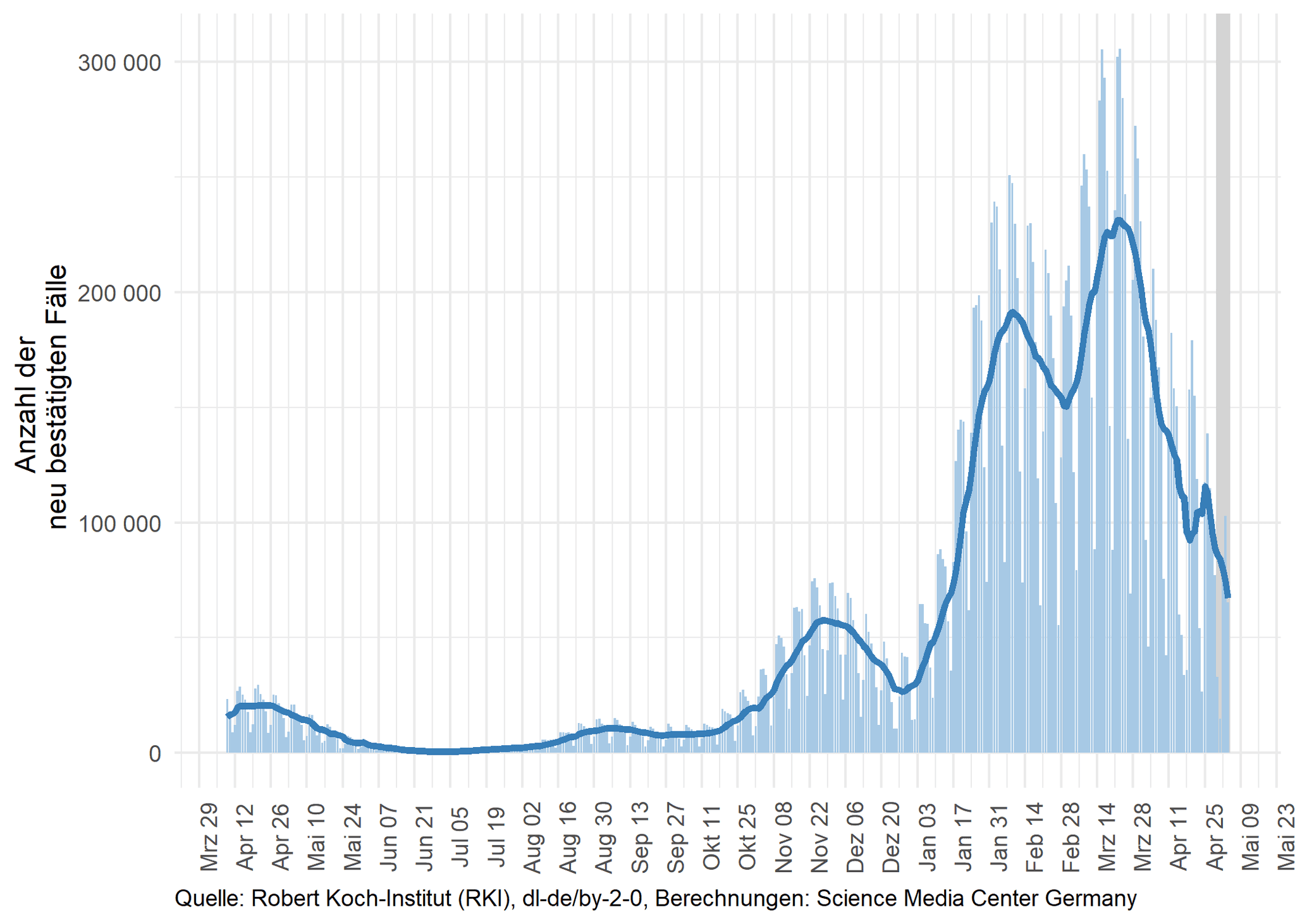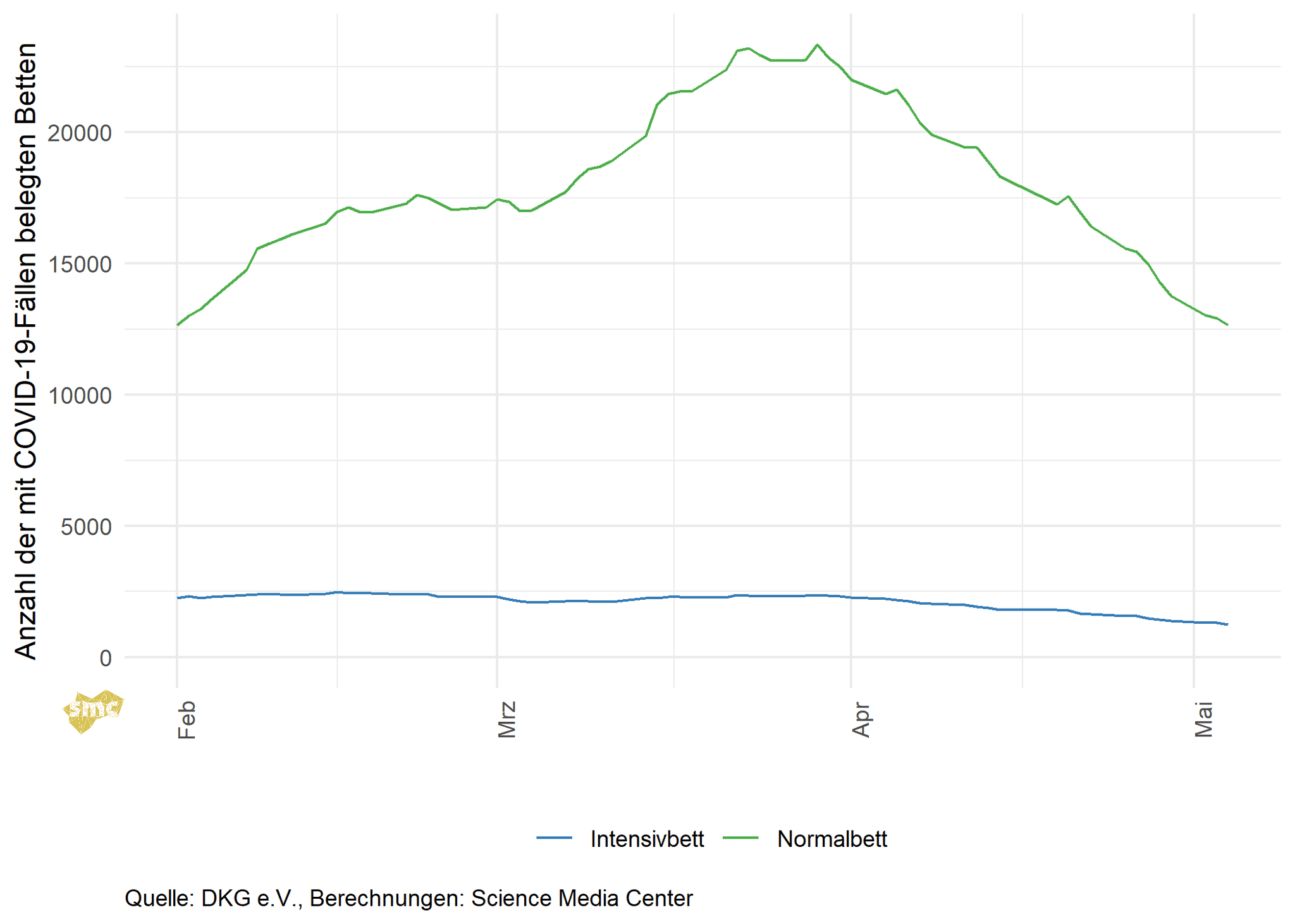 Das SMC verschafft Ihnen damit einen raschen Überblick über den Verlauf der gegenwärtigen Pandemie in Deutschland. Wir liefern nicht nur die nackten Zahlen, sondern ordnen die Statistiken und ihre zeitliche Entwicklung auch ein. So können Sie mit einem Blick die sich dynamisch verändernde aktuelle Situation erfassen.