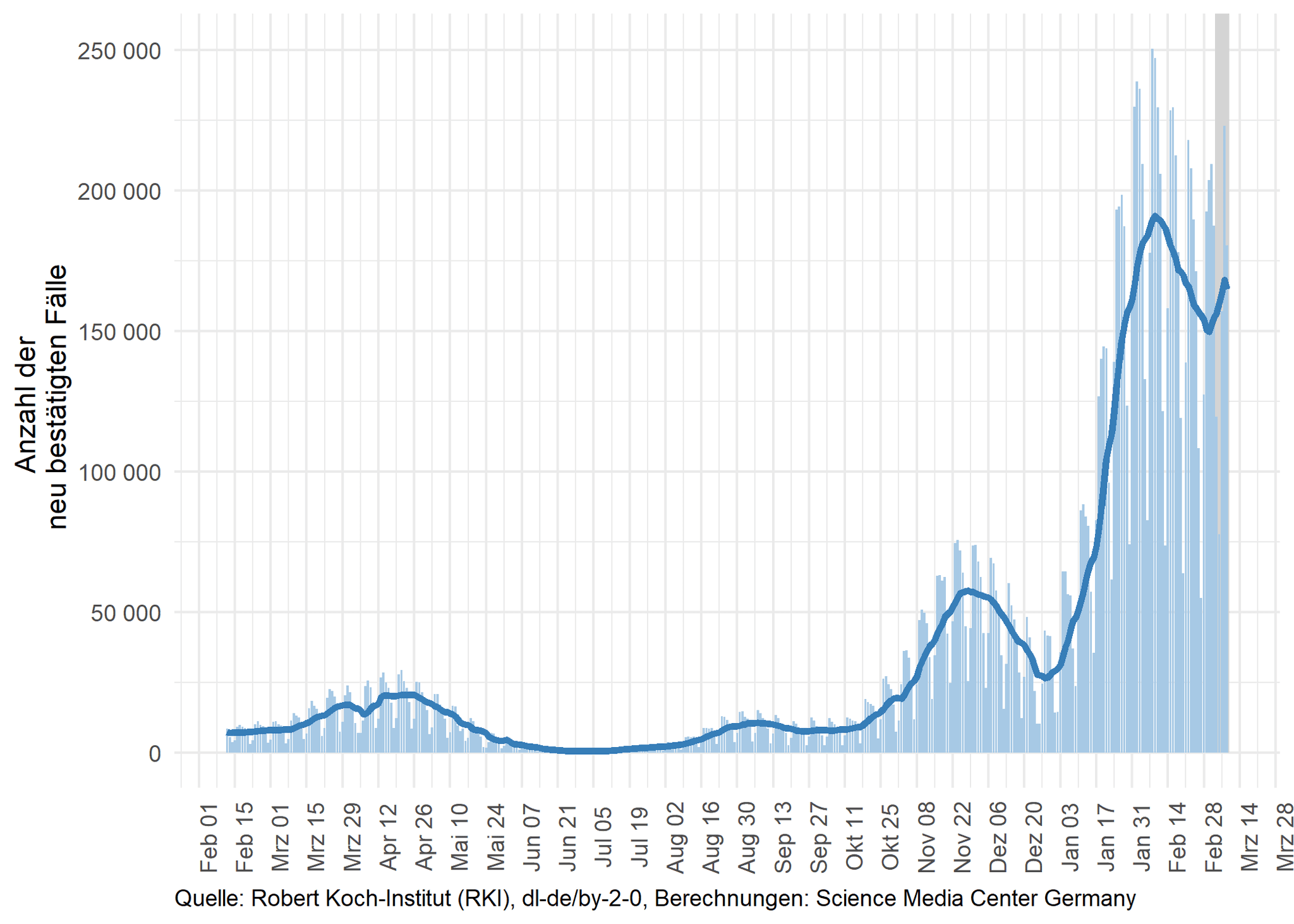 Dieser wöchentliche Report des Science Media Center Germany (SMC) fasst das aktuelle Corona-Geschehen anhand relevanter Kennzahlen zusammen und bietet neue Blickwinkel auf die verfügbaren Daten.