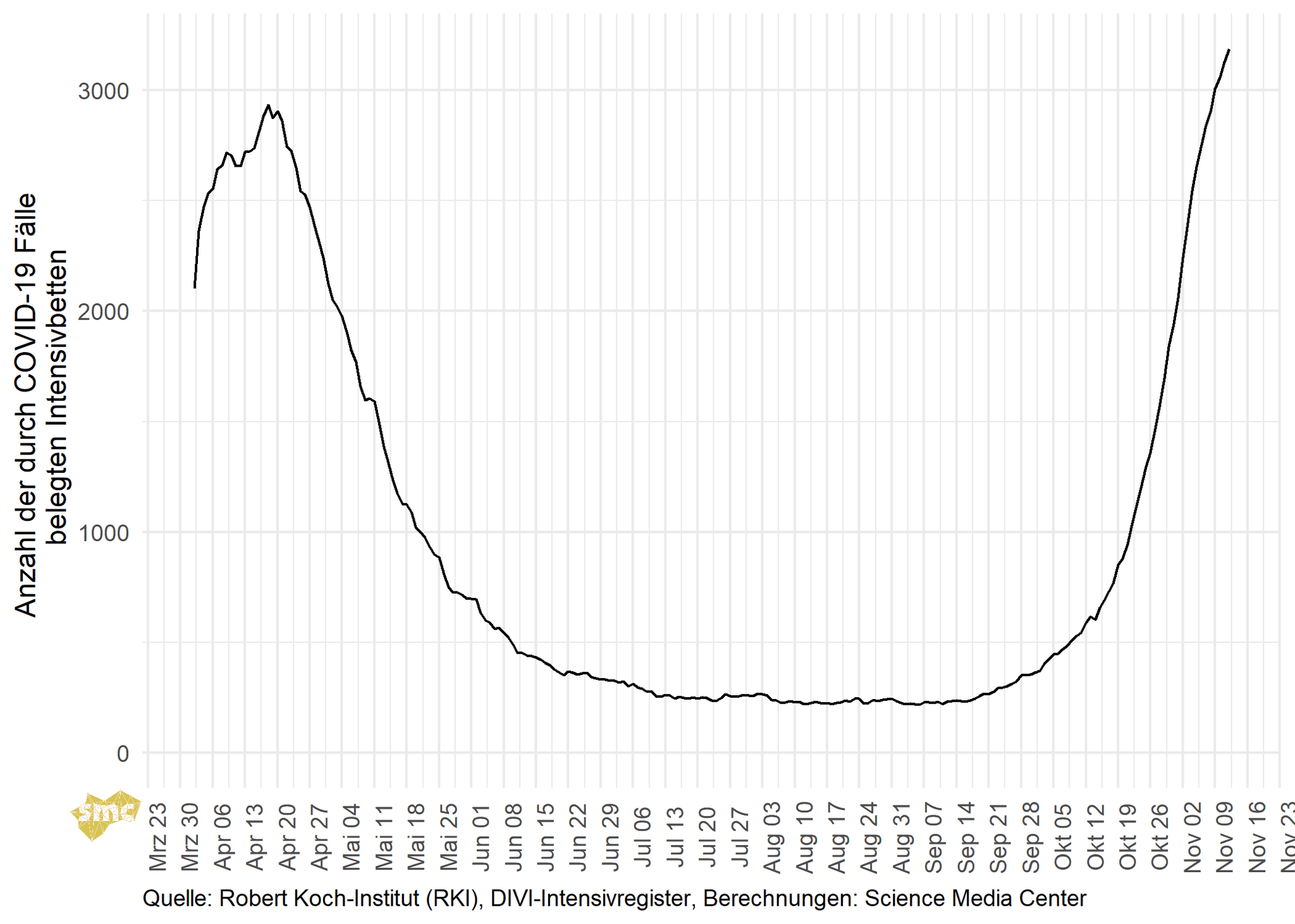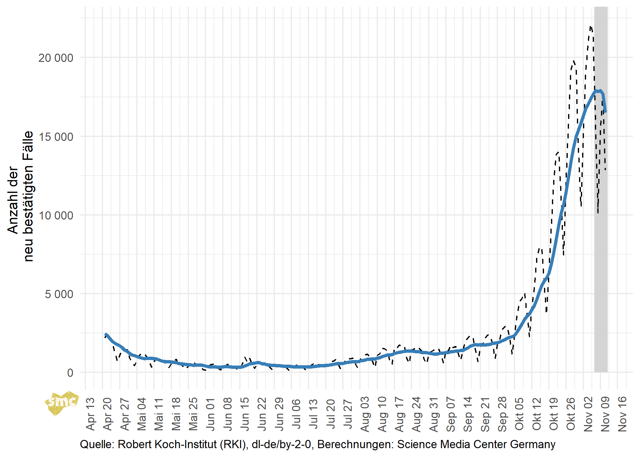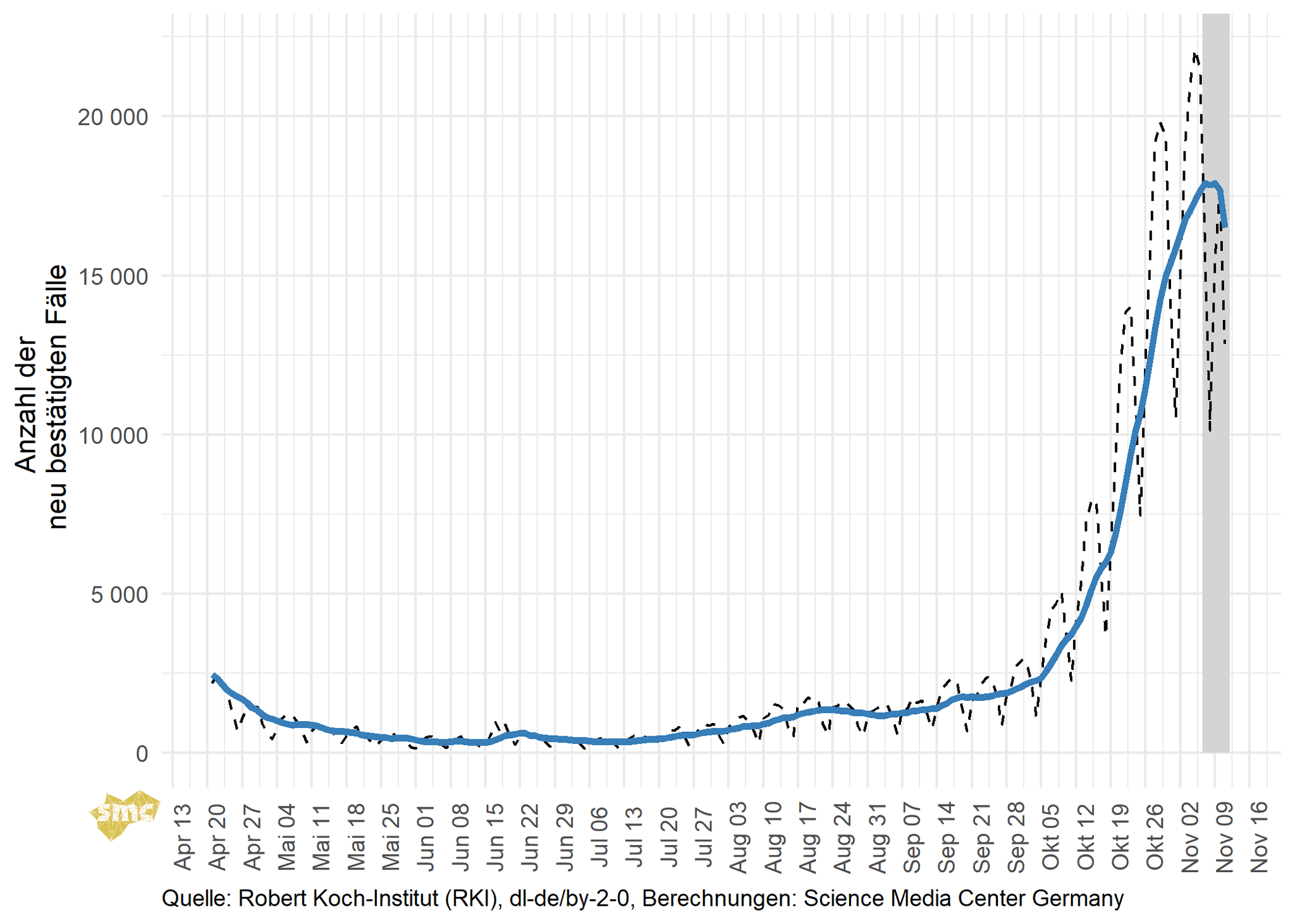 Das SMC verschafft Ihnen damit einen raschen Überblick über den Verlauf der gegenwärtigen Pandemie in Deutschland. Wir liefern nicht nur die nackten Zahlen, sondern ordnen die Statistiken und ihre zeitliche Entwicklung auch ein. So können Sie mit einem Blick die sich dynamisch verändernde aktuelle Situation erfassen.