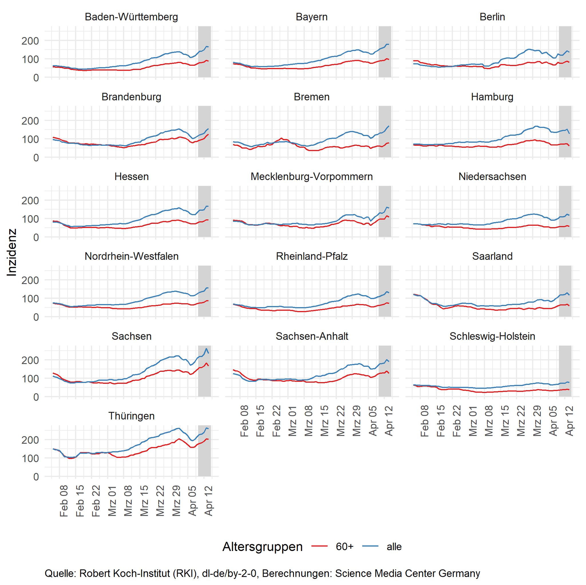 Nach Ostern steigen die Inzidenzen in allen Bundesländern.