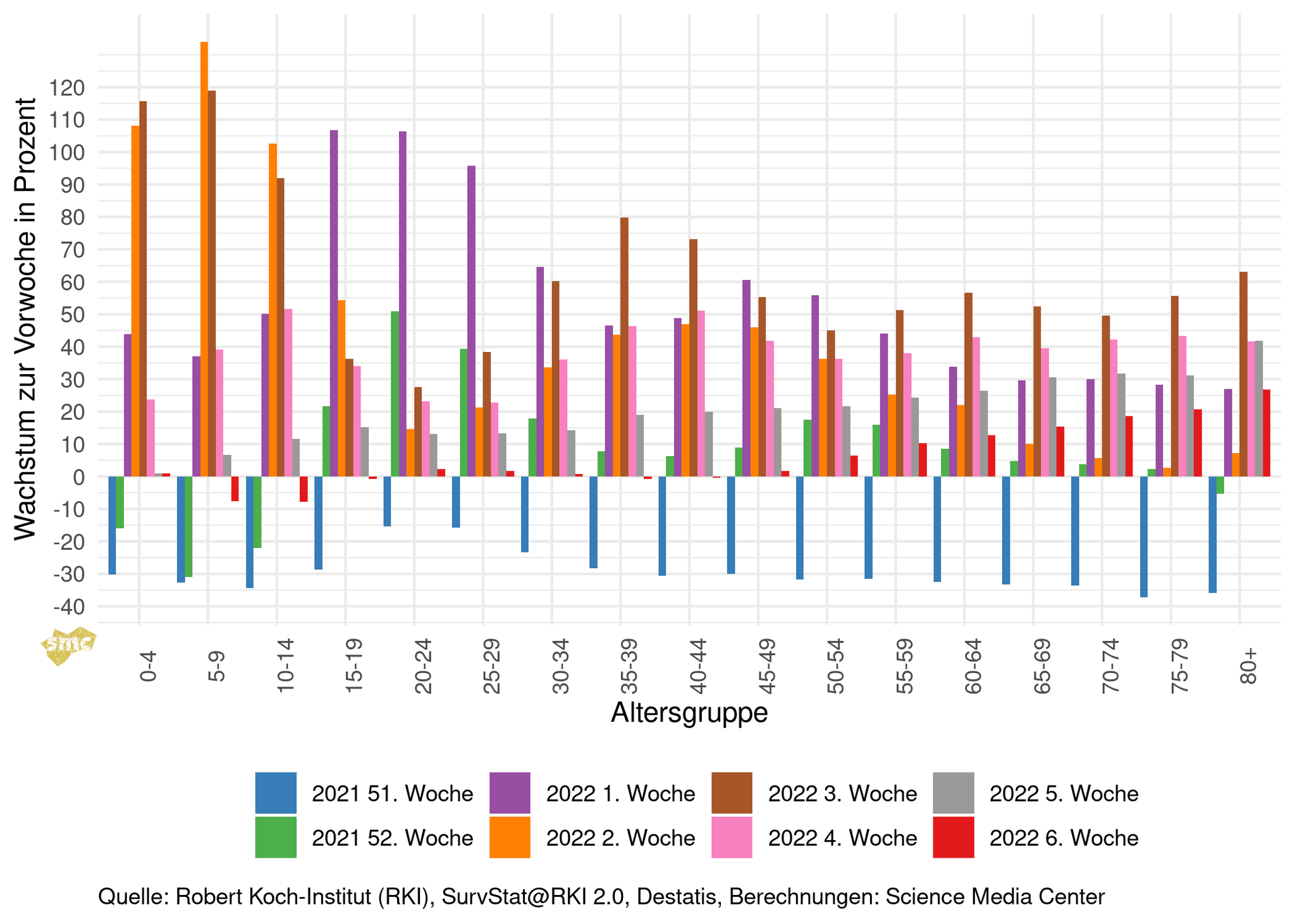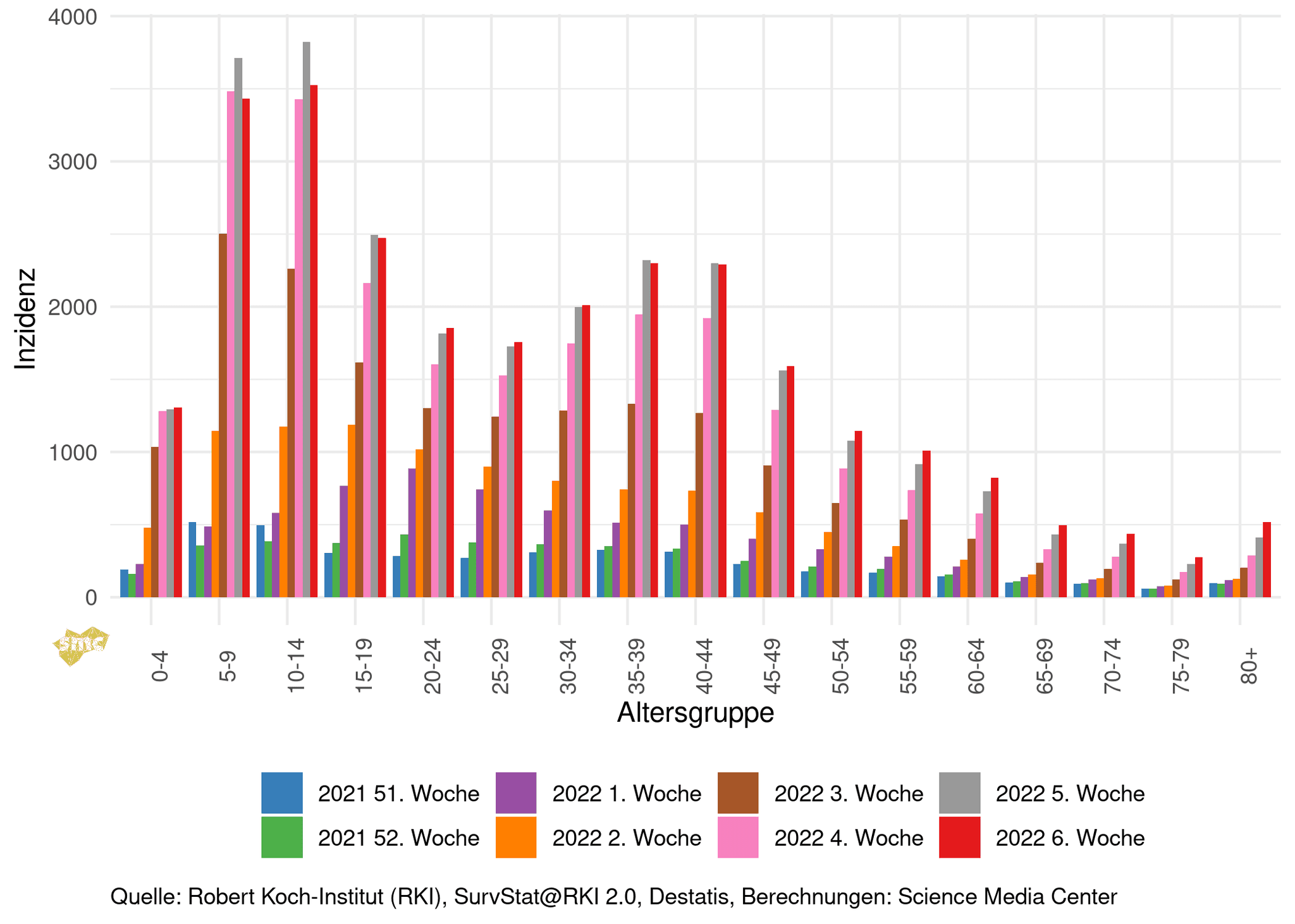 In der vergangenen Woche gab es nur bei den Kindern und Jugendlichen einen Rückgang der Inzidenzen. Die geänderte Teststrategie kann hier aber auch einen gewissen Einfluss haben.