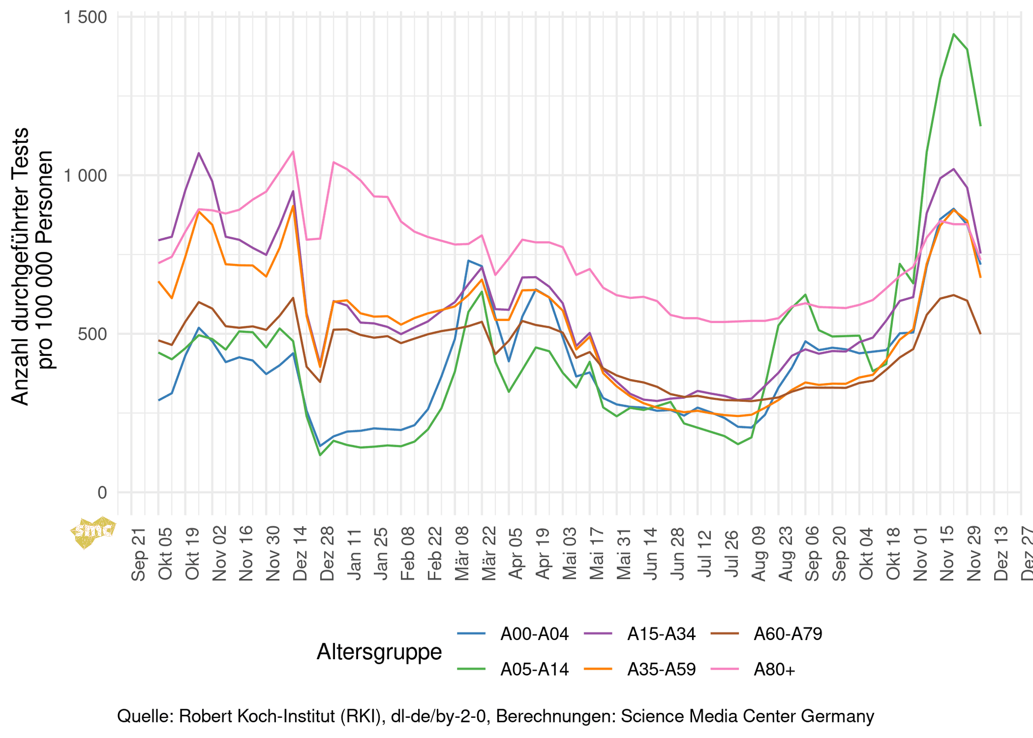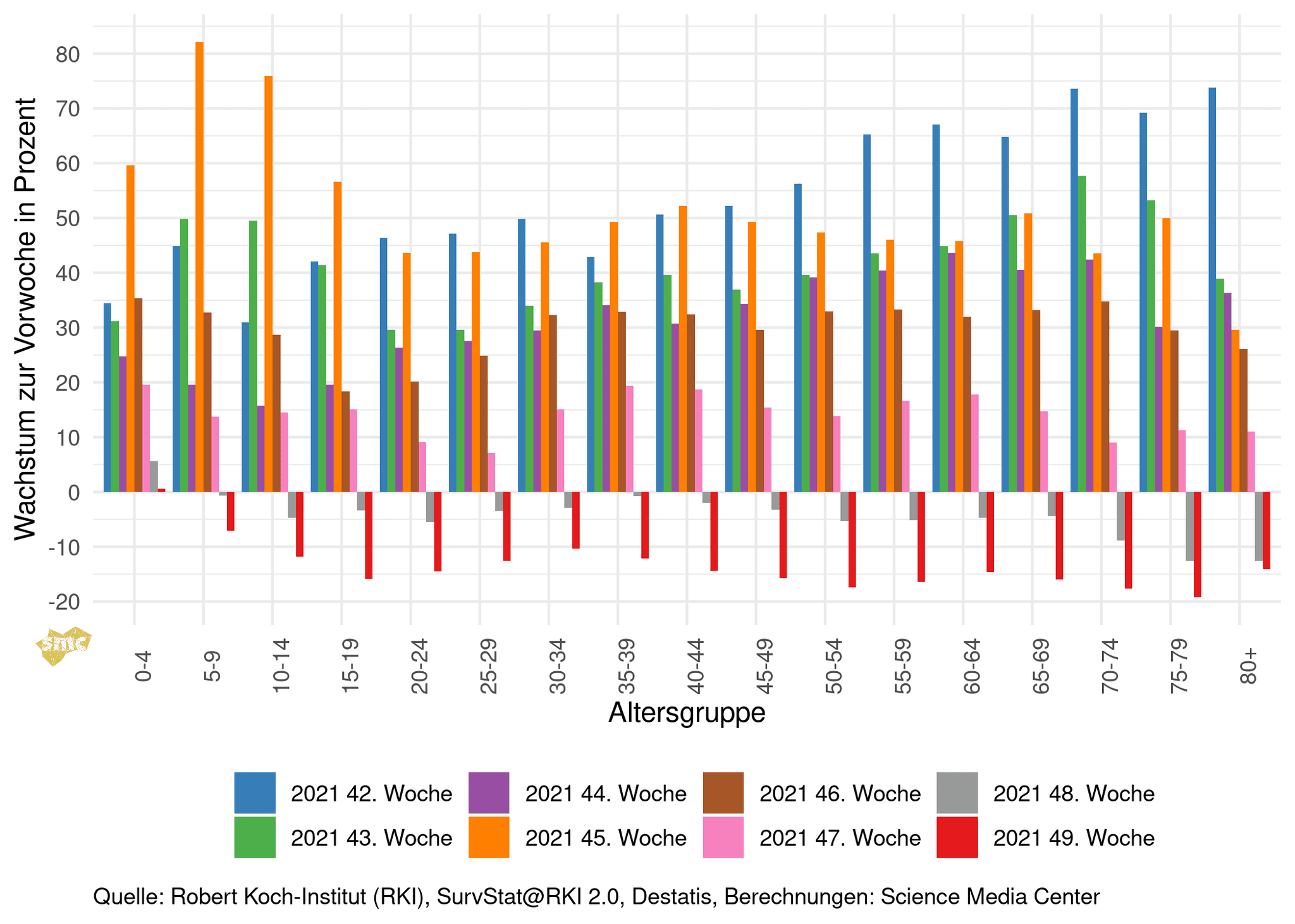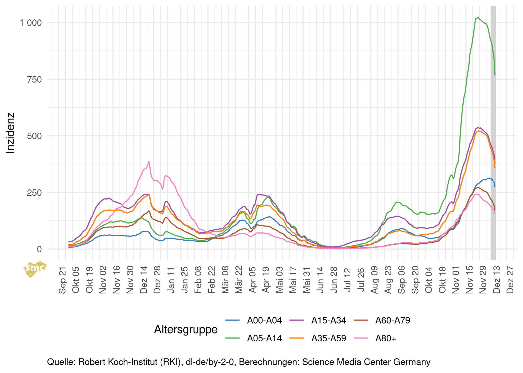 Die Inzidenz sinkt in allen Altersgruppen ab 5 Jahren.