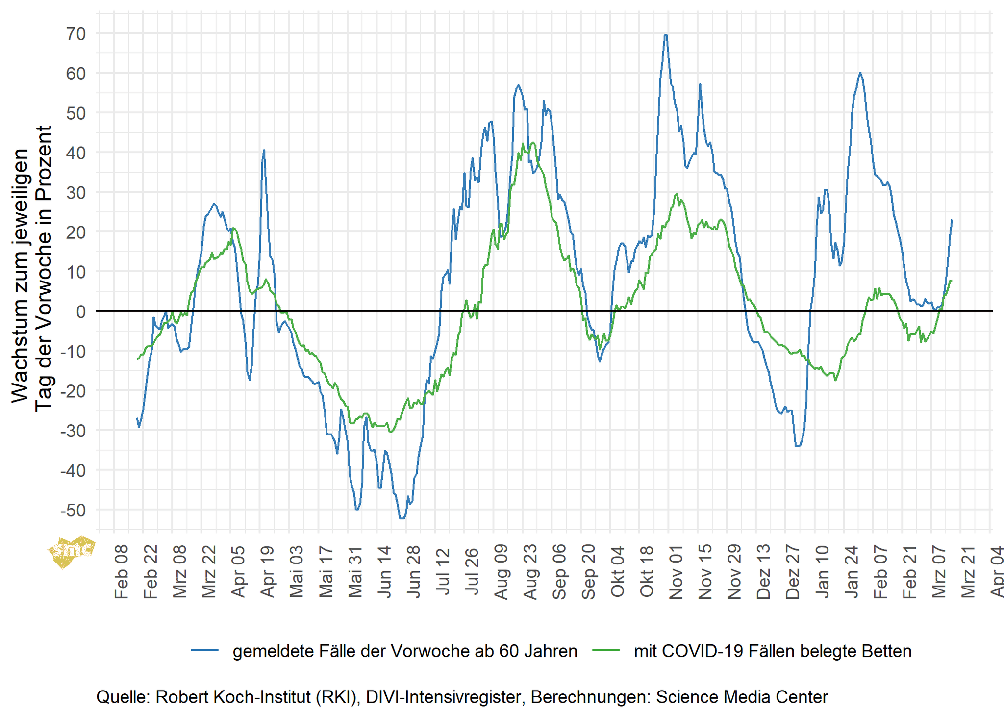 Dieser wöchentliche Report des Science Media Center Germany (SMC) fasst das aktuelle Corona-Geschehen anhand relevanter Kennzahlen zusammen und bietet neue Blickwinkel auf die verfügbaren Daten.