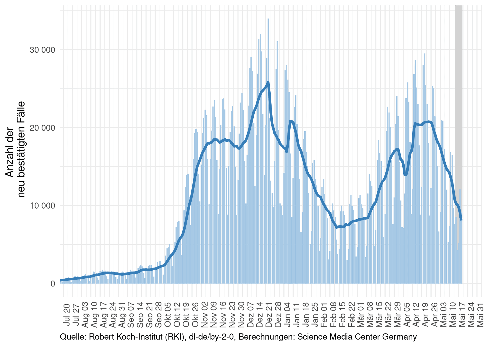 Das SMC verschafft Ihnen damit einen raschen Überblick über den Verlauf der gegenwärtigen Pandemie in Deutschland. Wir liefern nicht nur die nackten Zahlen, sondern ordnen die Statistiken und ihre zeitliche Entwicklung auch ein. So können Sie mit einem Blick die sich dynamisch verändernde aktuelle Situation erfassen.