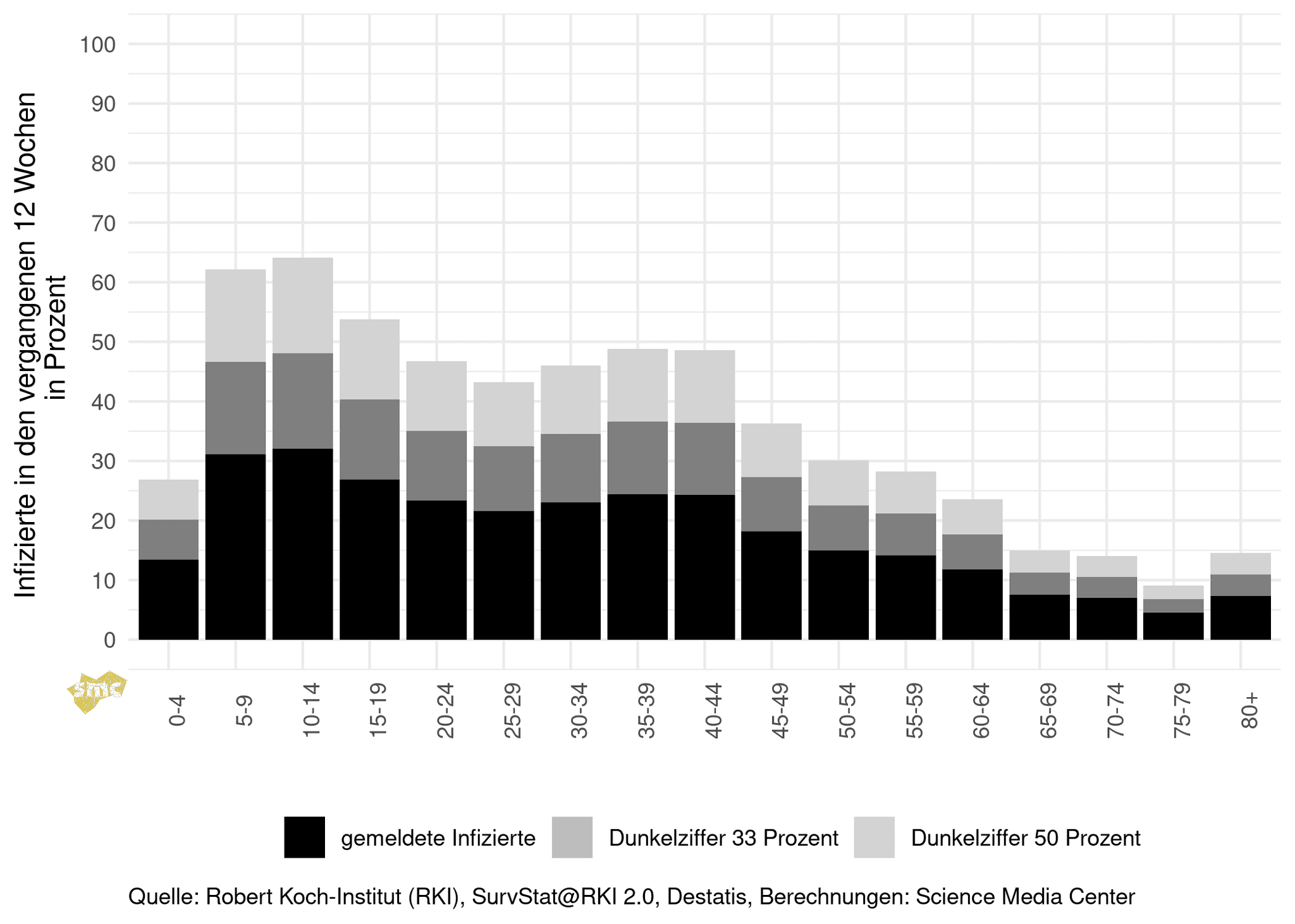Der Anteil der Personen, die in den vergangenen 12 Wochen eine Sars-CoV-2-Infektion durchgemacht haben, sinkt wieder, wenn man von einer konstanten Dunkelziffer ausgeht. Da durch das geänderte Testverhalten die Dunkelziffer nicht konstant ist, kann der Anteil auch noch leicht steigen, qualitativ ändert sich aber nichts an der aktuellen Situation: In den kommenden Wochen wird die Zahl der Infektionen sinken und damit auch der Anteil der erst kürzlich infizierten Personen.