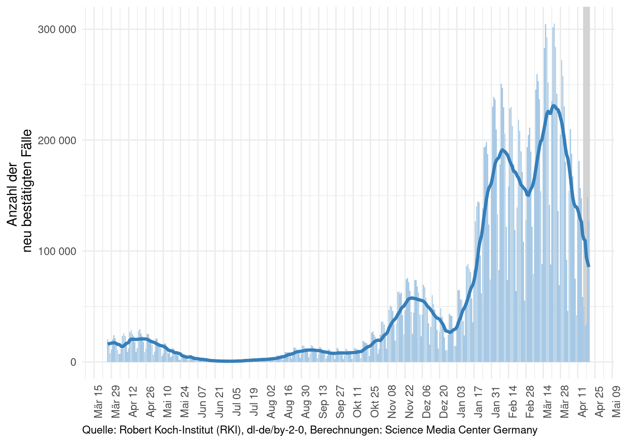 Das SMC verschafft Ihnen damit einen raschen Überblick über den Verlauf der gegenwärtigen Pandemie in Deutschland. Wir liefern nicht nur die nackten Zahlen, sondern ordnen die Statistiken und ihre zeitliche Entwicklung auch ein. So können Sie mit einem Blick die sich dynamisch verändernde aktuelle Situation erfassen.