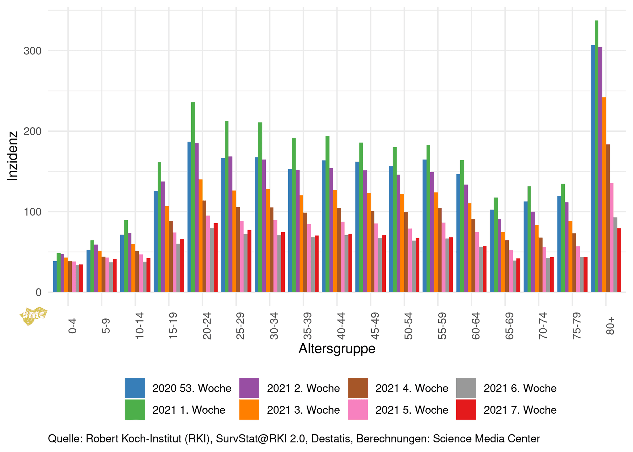 Dieser wöchentliche Report des Science Media Center Germany (SMC) fasst das aktuelle Corona-Geschehen anhand relevanter Kennzahlen zusammen und bietet neue Blickwinkel auf die verfügbaren Daten.