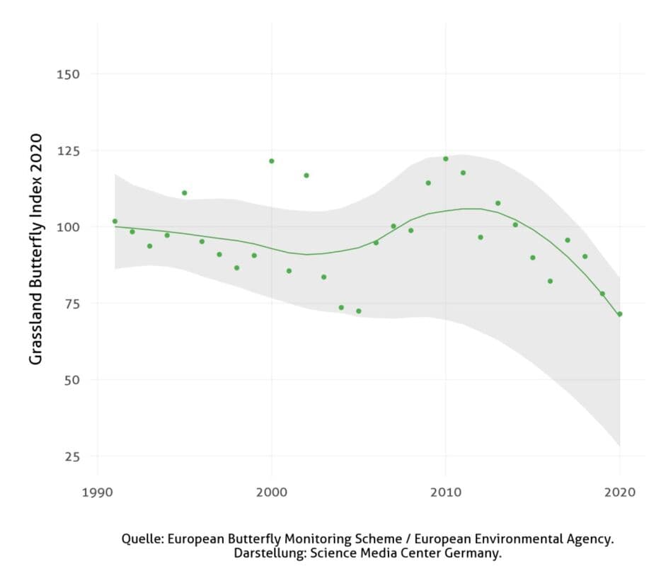 [8] Van Swaay CAM et al. (2020): European Grassland Butterfly Indicator 1990-2020 Technical report. Butterfly Conservation Europe & SPRING/eBMS & Vlinderstichting.
