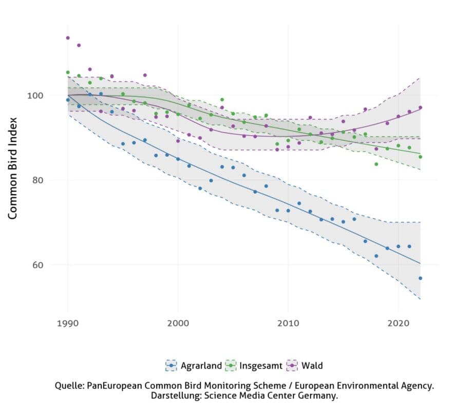 [23] Rigal S et al. (2023): Farmland practices are driving bird population decline across Europe. PNAS. DOI: 10.1073/pnas.2216573120.