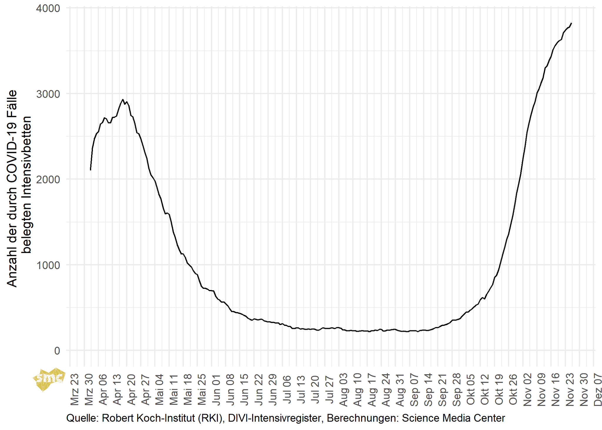 Das Wachstum der Fallzahlen auf den Intensivstationen