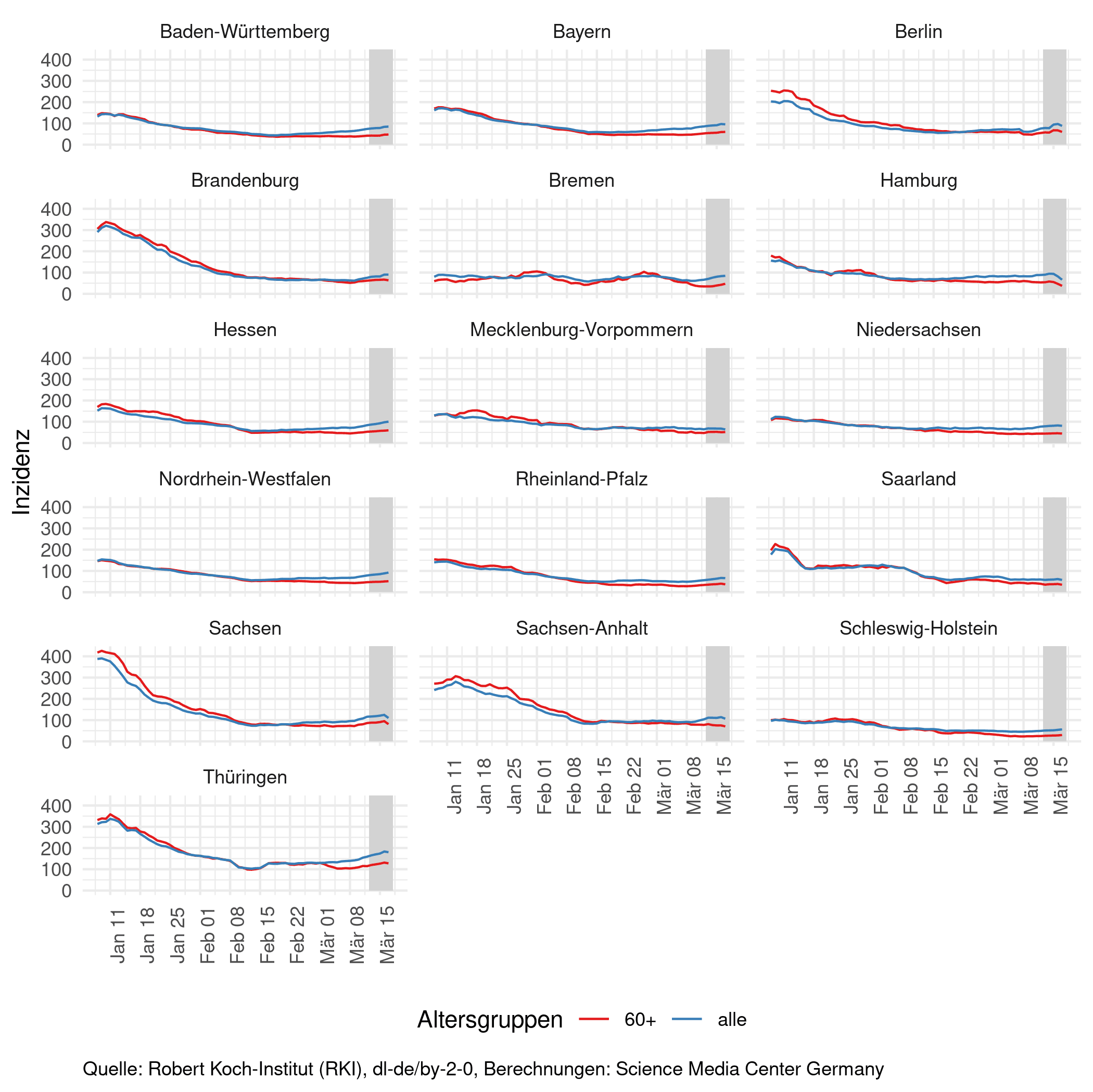 Mit Ausnahme von Mecklenburg-Vorpommern und dem Saarland steigen die Inzidenzen in allen Bundesländern zum Teil deutlich.