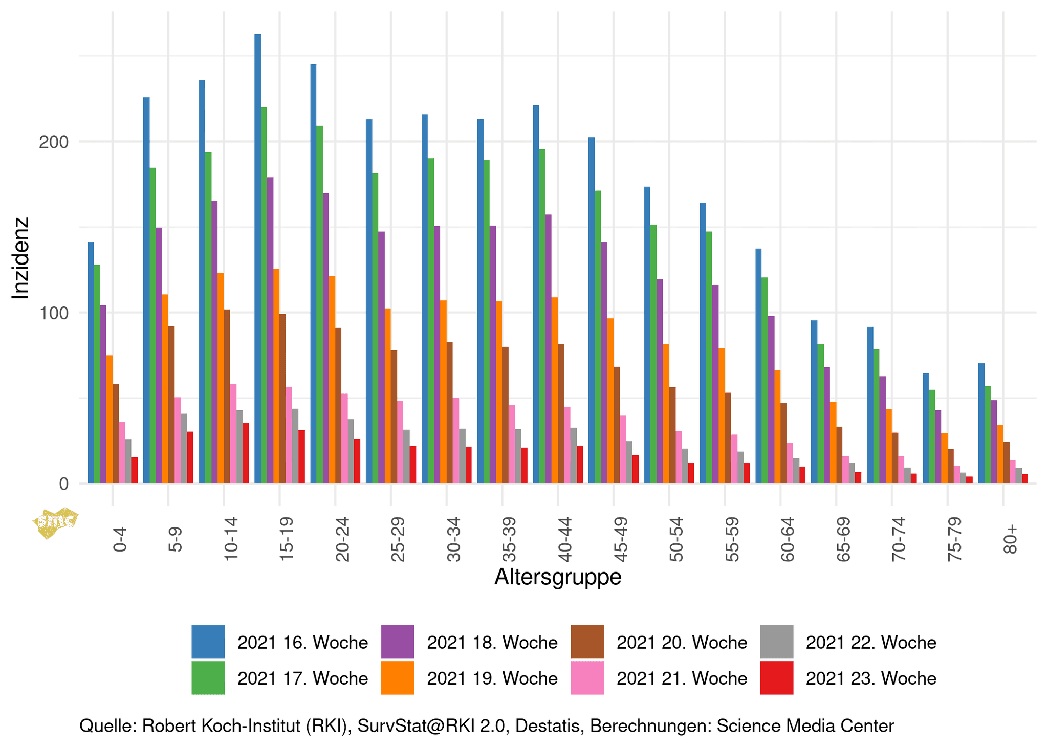 Dieser wöchentliche Report des Science Media Center Germany (SMC) fasst das aktuelle Corona-Geschehen anhand relevanter Kennzahlen zusammen und bietet neue Blickwinkel auf die verfügbaren Daten.