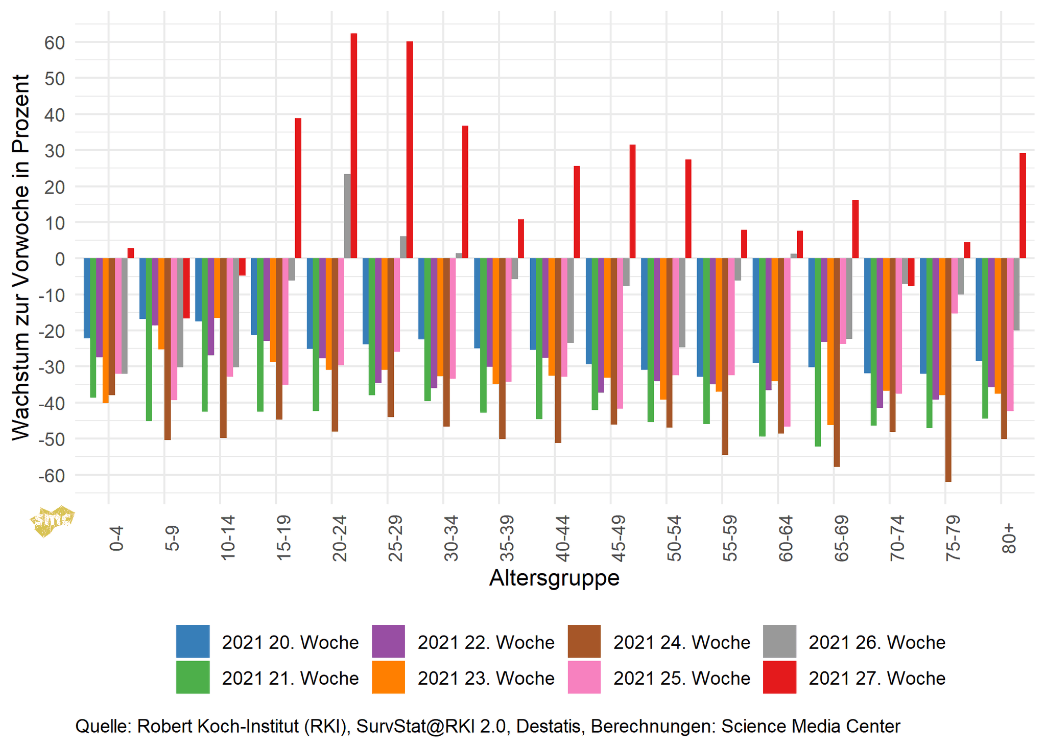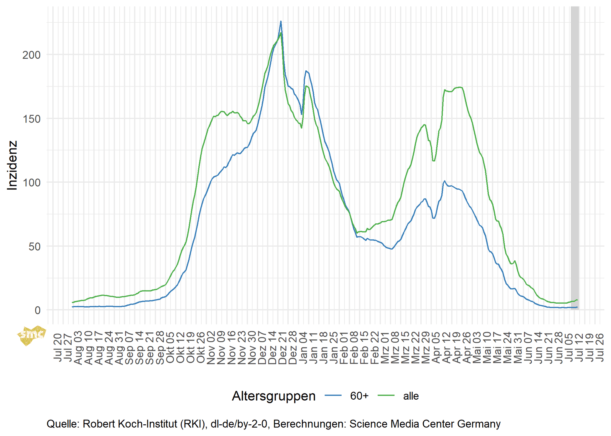Dieser wöchentliche Report des Science Media Center Germany (SMC) fasst das aktuelle Corona-Geschehen anhand relevanter Kennzahlen zusammen und bietet neue Blickwinkel auf die verfügbaren Daten.