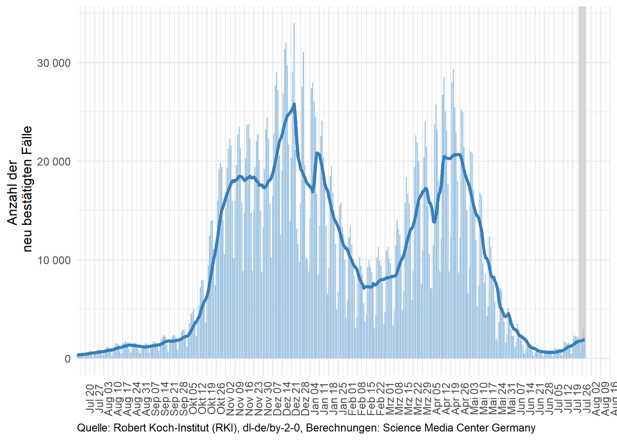 Dieser wöchentliche Report des Science Media Center Germany (SMC) fasst das aktuelle Corona-Geschehen anhand relevanter Kennzahlen zusammen und bietet neue Blickwinkel auf die verfügbaren Daten.