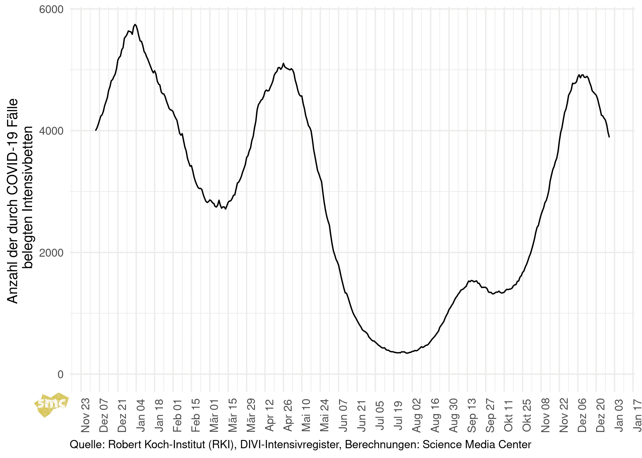Die Zahl der COVID-19-Fälle auf den Intensivstationen sinkt deutlich.