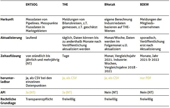Die folgende Tabelle gibt einen Überblick über die Quellen für aktuelle Gas-Verbrauchsdaten.