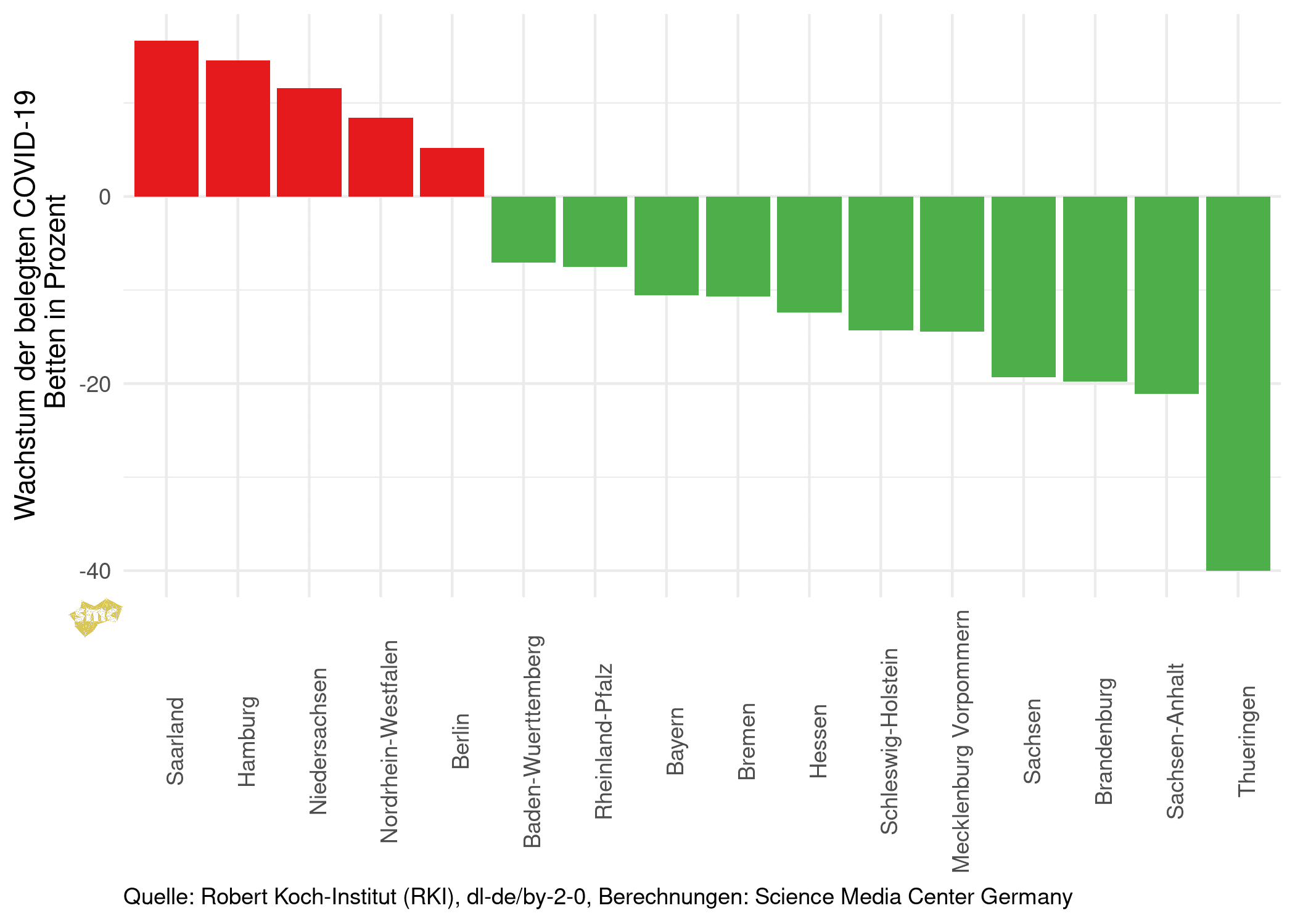In einigen Bundesländern gibt es im Vergleich zur Vorwoche steigende Zahlen der COVID-19-Fälle auf den Intensivstationen. Der Trend ist aber in keinem Bundesland besonders eindeutig.