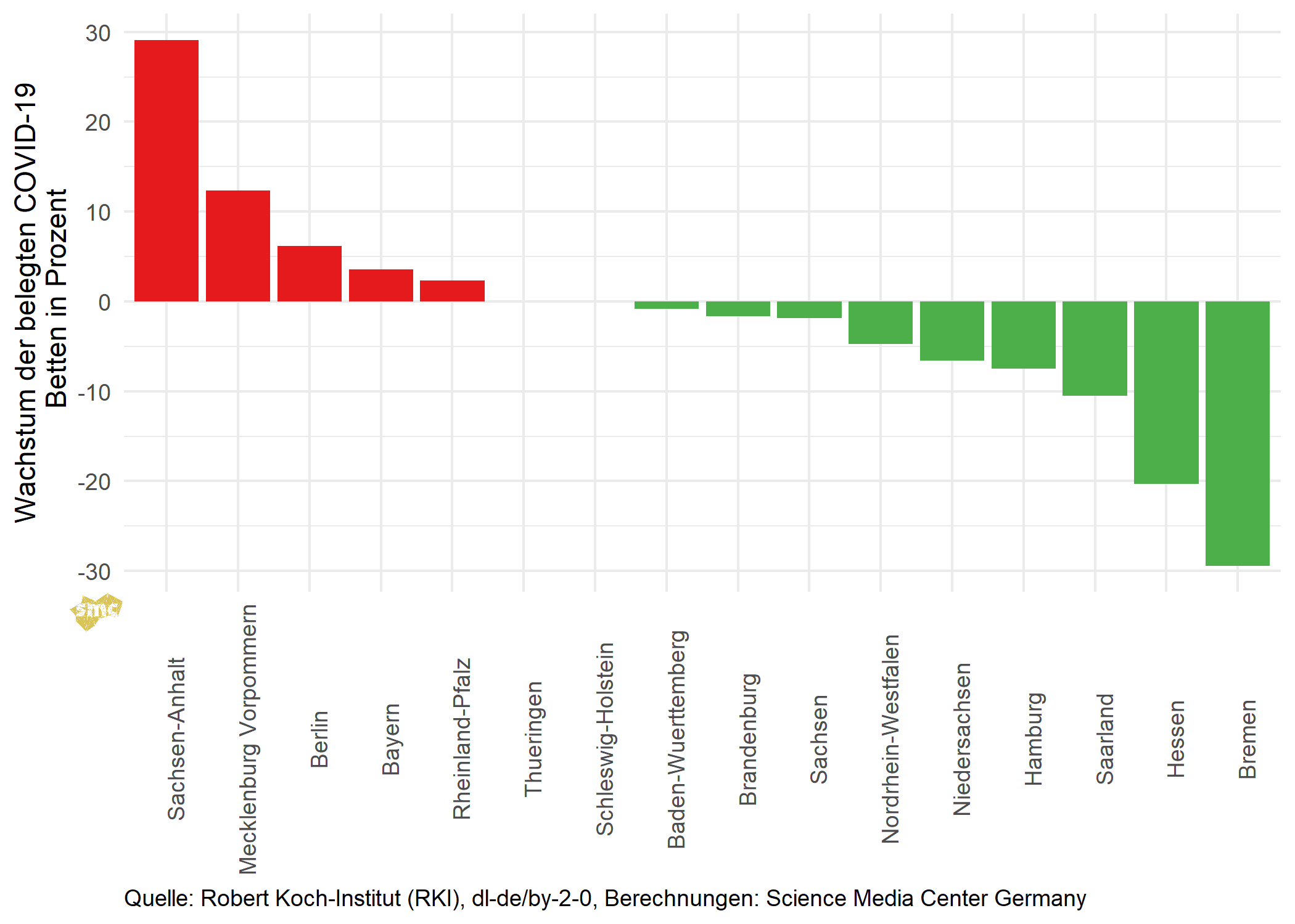 Der Trend der Intensivstationen ist für die Bundesländer weiterhin uneinheitlich. Deutliches Wachstum verzeichnet Sachsen-Anhalt, allerdings noch auf niedrigem absoluten Niveau.