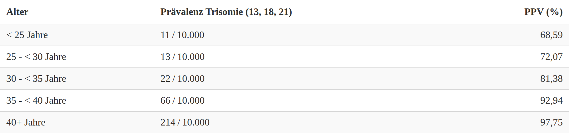 „Für die Bewertung des positiv-prädiktiven Vorhersagewertes eines Screeningtests sind daher mindestens altersstratifizierte Prävalenzannahmen und idealerweise auch gestationsaltersbezogene Betrachtungen erforderlich.“