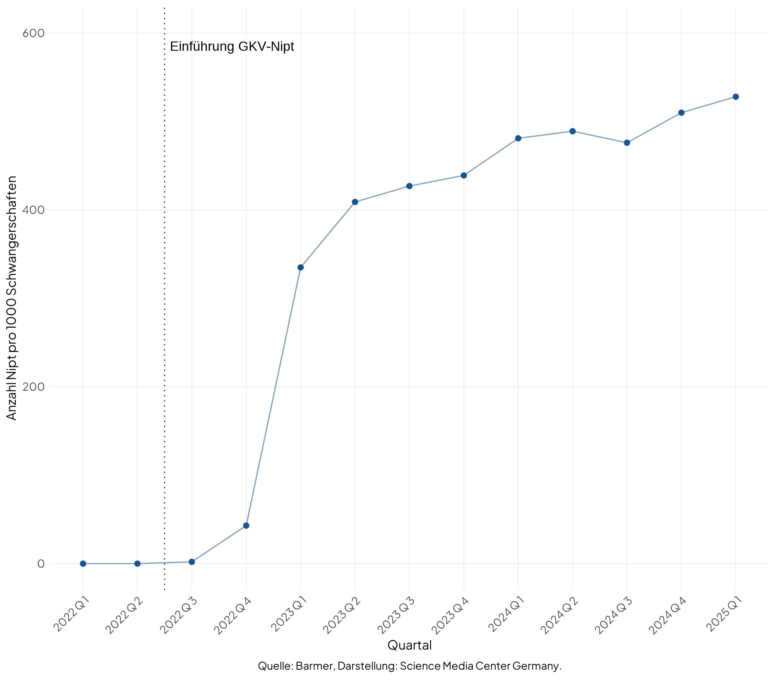 [III] Hertle D et al. (2025): Erste Zahlen zur Inanspruchnahme des nicht invasiven Pränataltests auf Trisomie 13, 18 und 21 (Nipt). Versorgungskompass. Barmer Institut für Gesundheitssystemforschung.